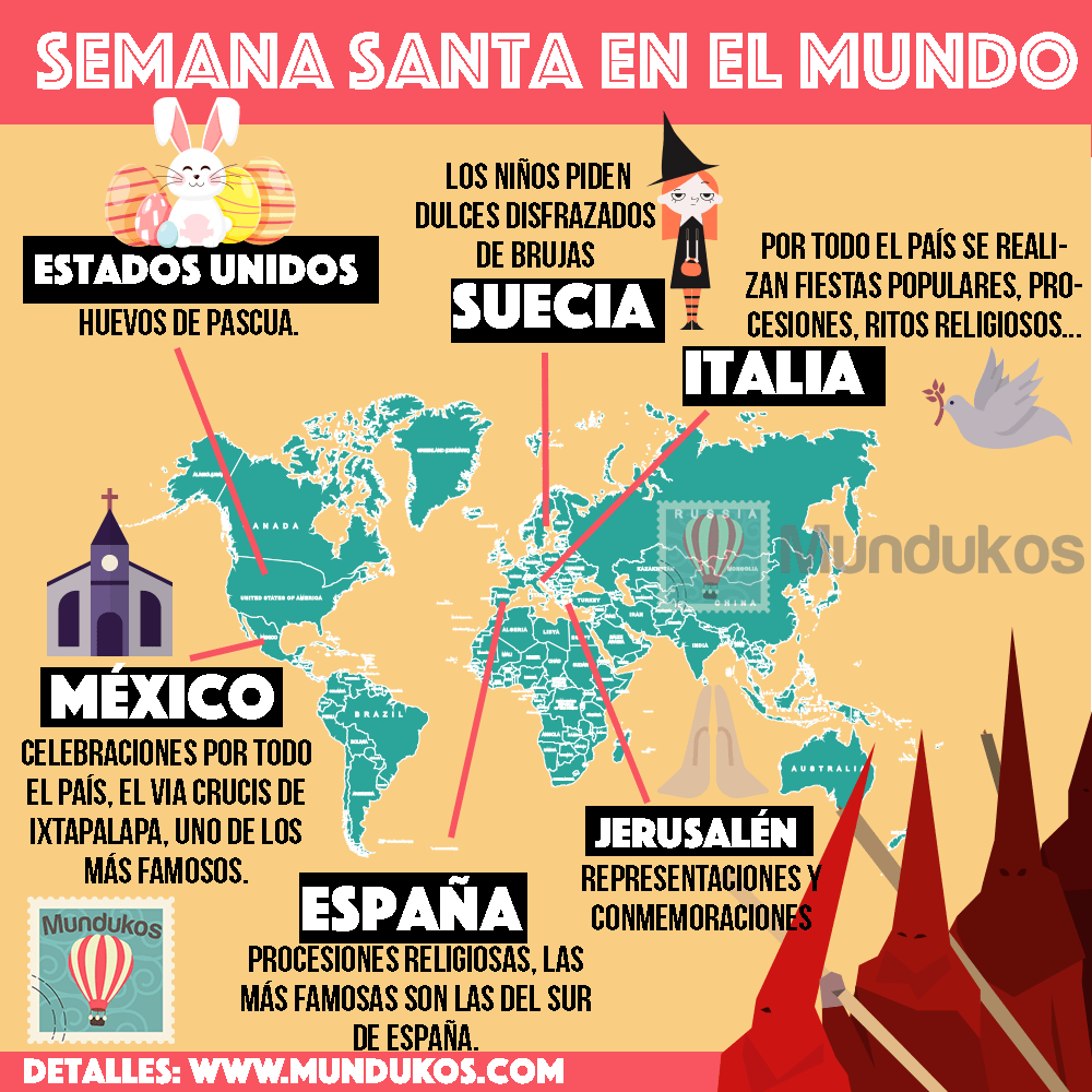 - España: En España, la Semana Santa es un evento muy importante, y el Día de Pascua se celebra con diversas procesiones y tradiciones culinarias, como la mona de Pascua.