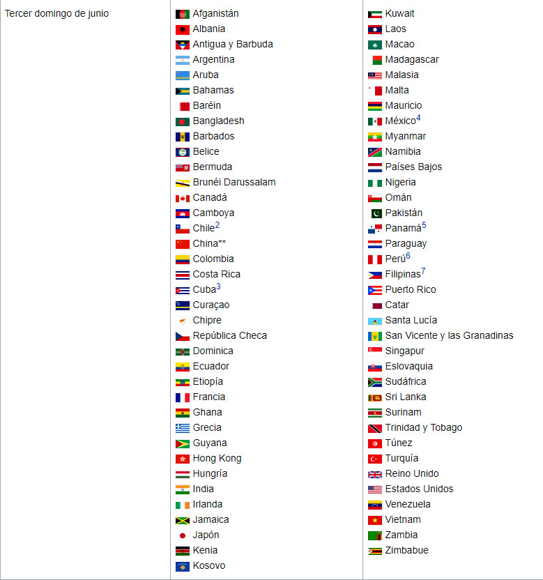 Lista de países que celebran el Día del Padre en junio